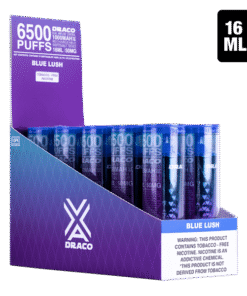 - Superior Flavor Delivery System: Draco’s advanced technology ensures consistent and vibrant flavor from your first puff to your last. Unlike other disposables that lose their punch quickly, Blue Lush maintains its delicious taste throughout its life.