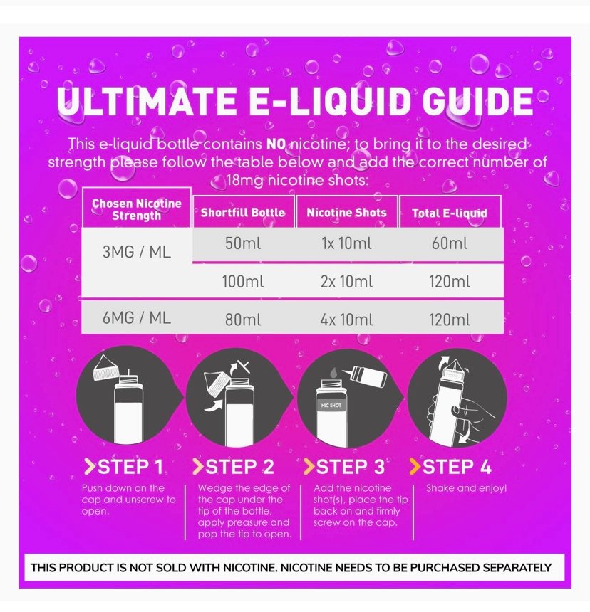 - Personalised Vaping Experience: All of our 120ml e-liquid short fills contain no nicotine, which gives our customers the flexibility to add nicotine shots or salts to create the vape strength of their desire.