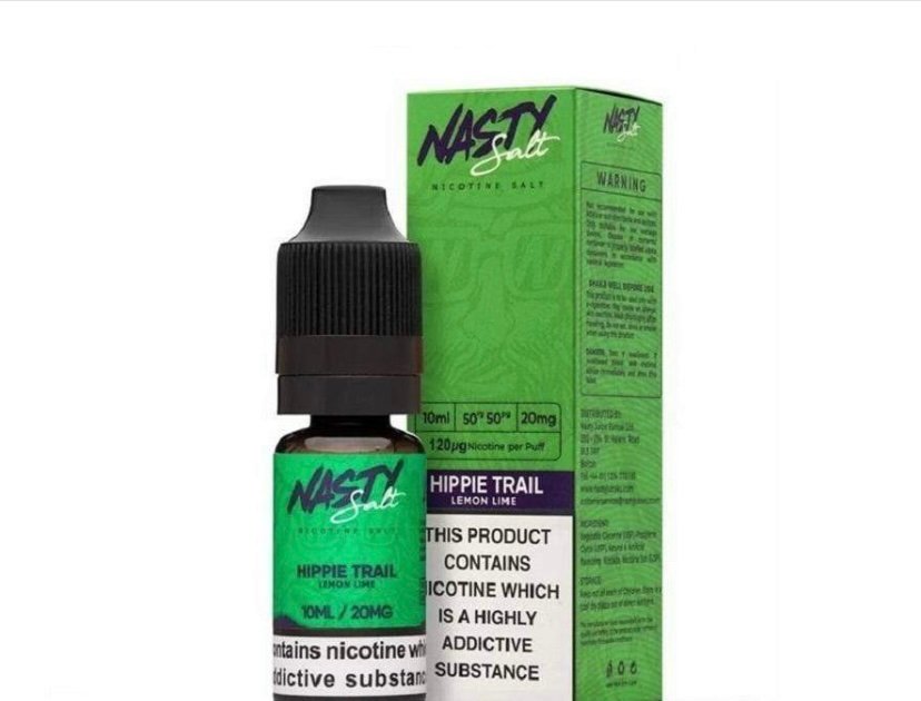Nasty Salt Nic Hippie Trail is a citrus fruit flavour mixed with lime and lemon flavour present throughout inhale and exhale with hints of sweetness for a balanced vape.