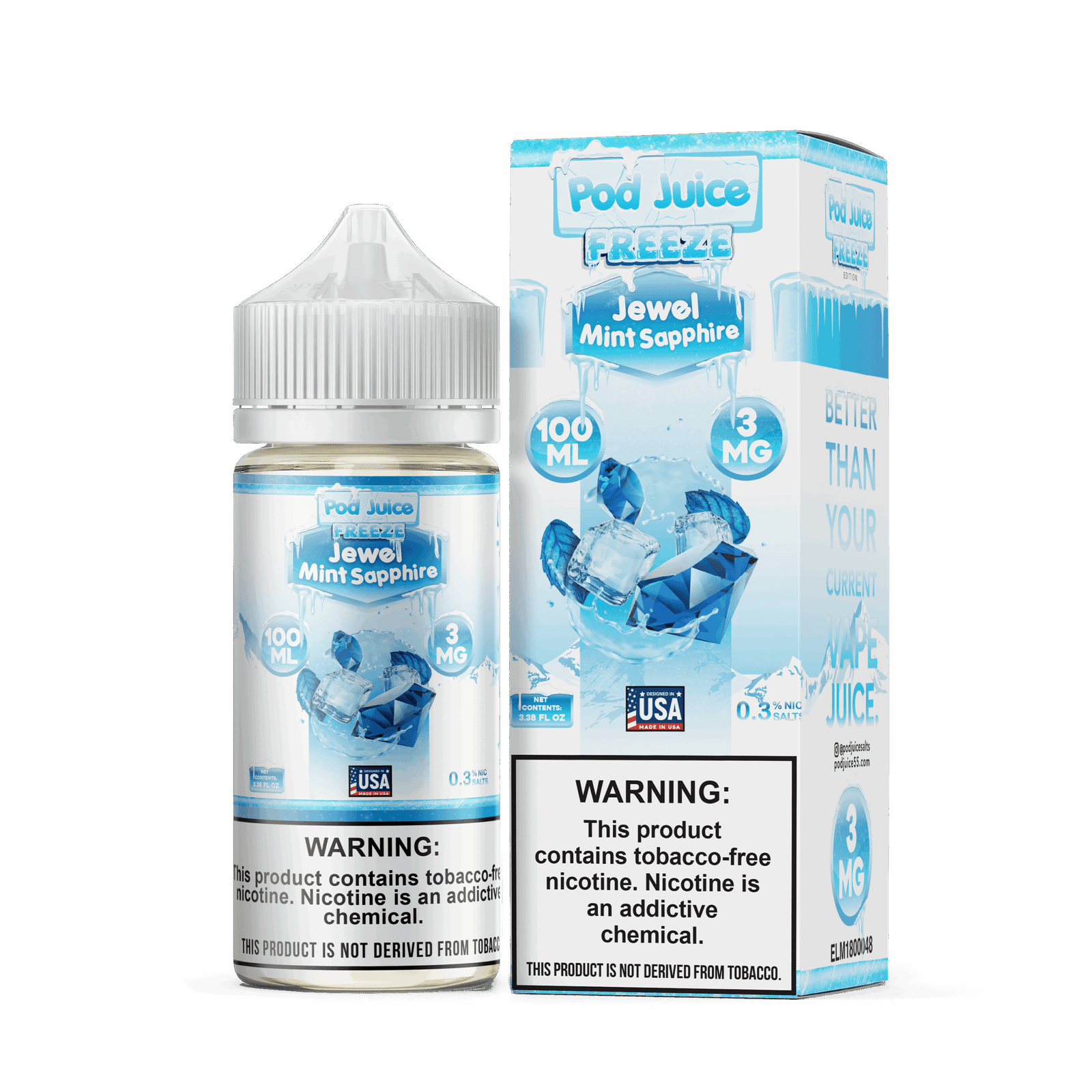 Introducing Pod Juice Freeze Jewel Mint Sapphire TF 100ml Vape Juice – a groundbreaking e-liquid designed to deliver an unparalleled vaping experience. We’ve taken the beloved Jewel Mint and elevated it to a whole new level of frosty coolness and intense flavor, creating a masterpiece that will redefine your expectations.