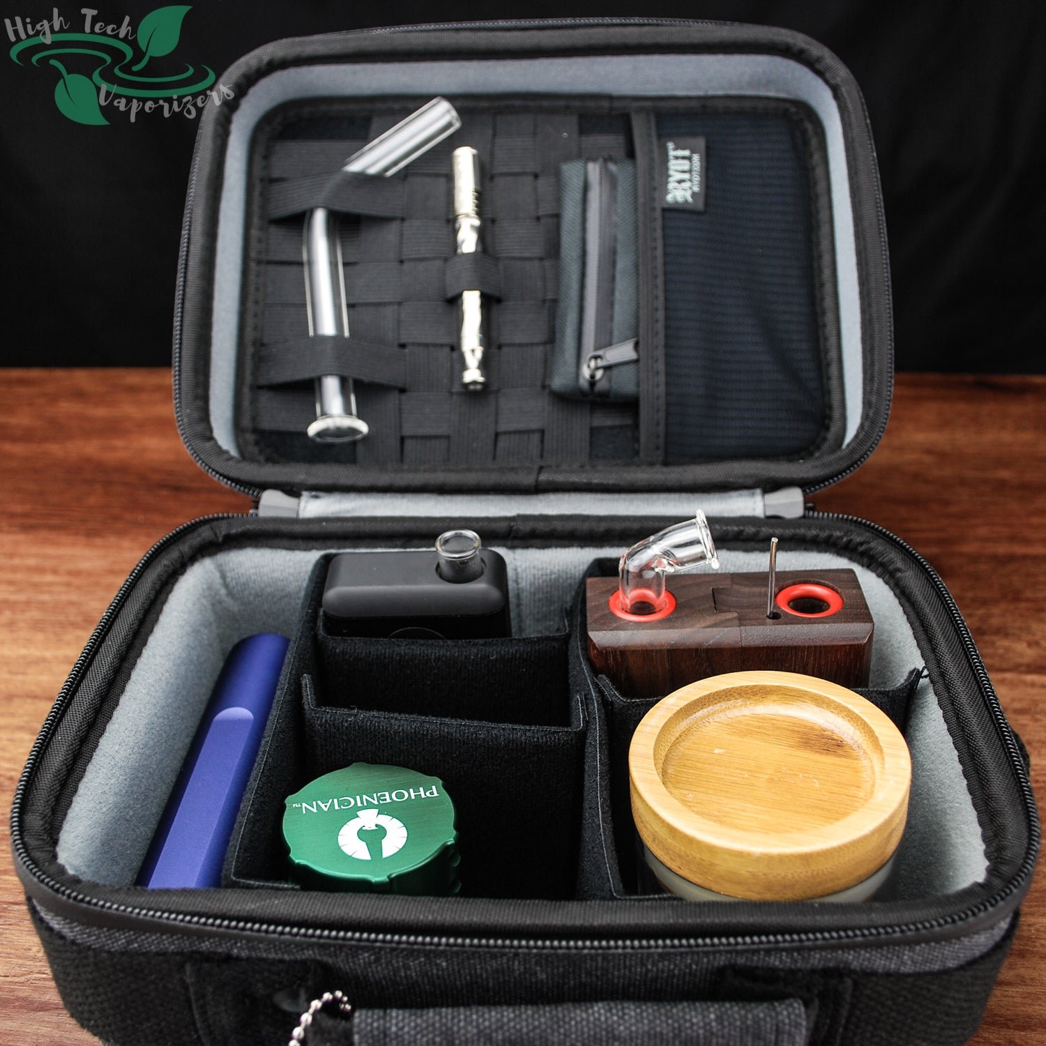 The Ryot Safe Case can handle a wide range of storage tasks and is up to the challenge of storing just about all portable vaporizers. This is due to the removable padded walls. This kit comes with 2 long walls and 3 short. Ontop of all the storage down below is the X-strap system located in the lid. Along with a mesh pocket and small zip bag. The small safe case will likely do the job for most but if this is not going to handle your kit then check out the large safe case.
